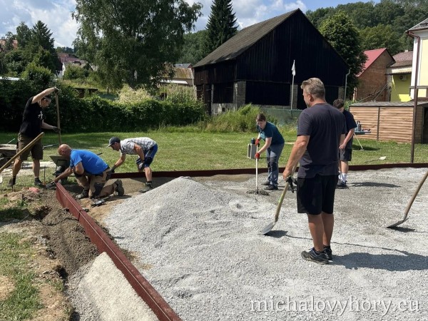 V naší obci Michalovy Hory probíhá od 14. června 2025 rekonstrukce dětského hřiště, které se stane příjemným místem pro volnočasové aktivity dětí i jejich rodičů. Práce probíhají postupně a většinu z nich zajišťují dobrovolníci z řad místních obyvatel během víkendů.