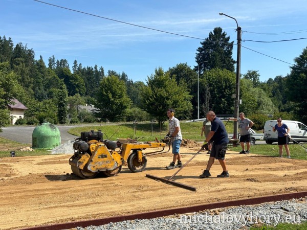 Nejprve bylo nutné prostor celkově připravit – vybagrovat starý povrch a upravit terén. Následně jsme zabetonovali obrubníky, navezli štěrk a ten pečlivě uválcovali. Poté přišla na řadu vrstva písku, kterou bylo také nutné zhutnit, aby vznikl pevný a rovný podklad pro další využití.