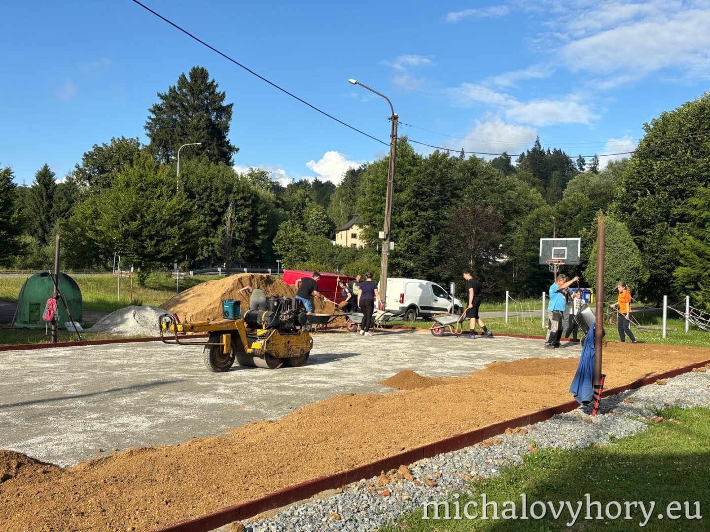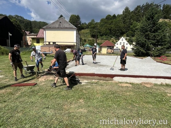 V naší obci Michalovy Hory probíhá od 14. června 2025 rekonstrukce dětského hřiště, které se stane příjemným místem pro volnočasové aktivity dětí i jejich rodičů. Práce probíhají postupně a většinu z nich zajišťují dobrovolníci z řad místních obyvatel během víkendů.