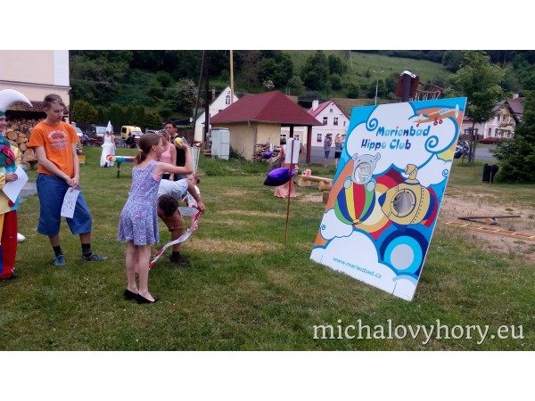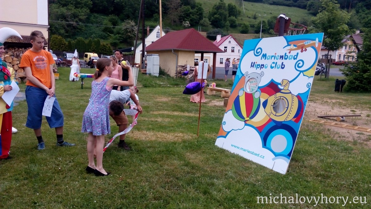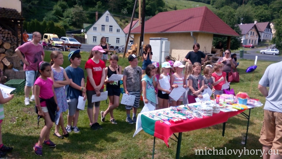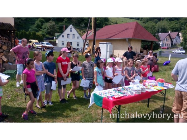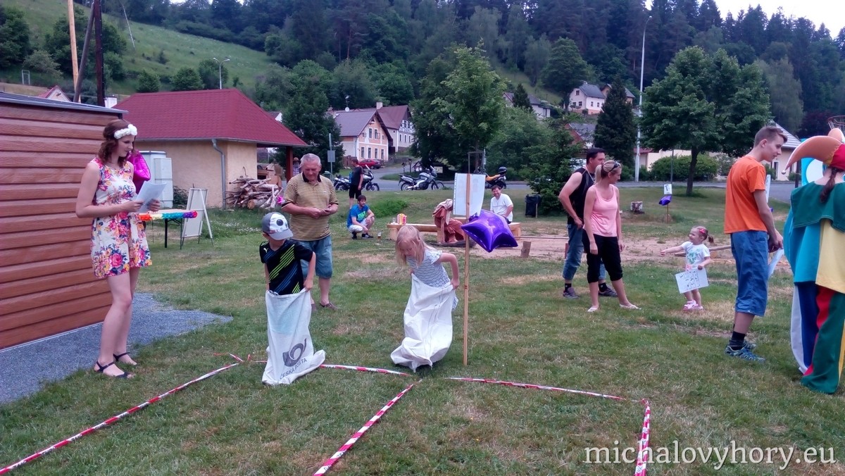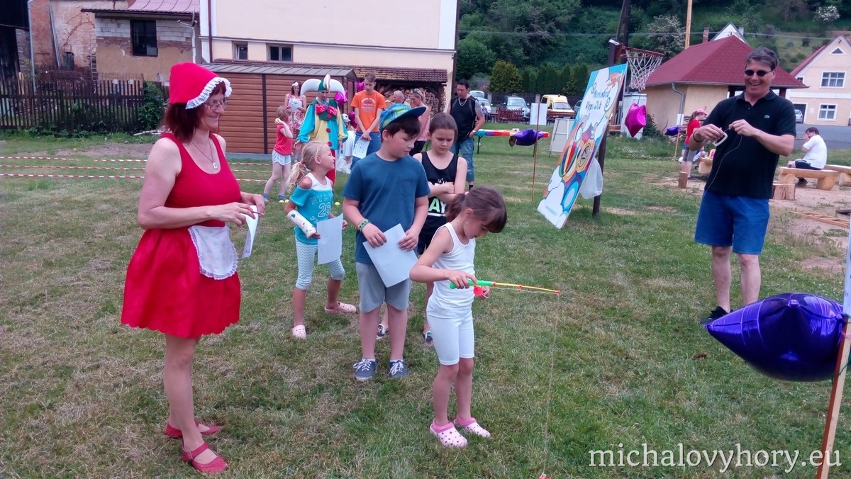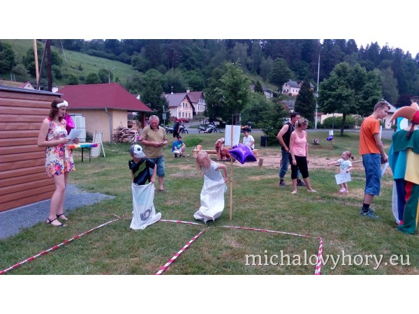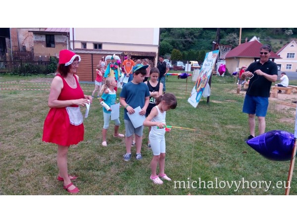Naše pohádkové postavičky pro děti připravili zábavné disciplíny a hry. Po splnění disciplín každé dítko dostalo diplom a pěknou cenu. Náladu nám nezkazila ani řádná dešťová sprcha, která naštěstí netrvala dlouho a mohlo dojít i na opékání špekáčků.